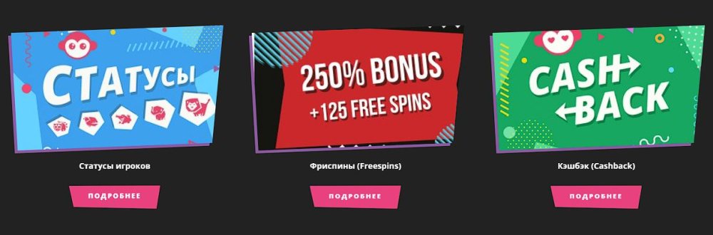 - бонус на казино – до 1750 евро и 250 бесплатных фриспинов. По условиям акции выплаты начисляются дробно и зависят от суммы первых пяти депозитов.