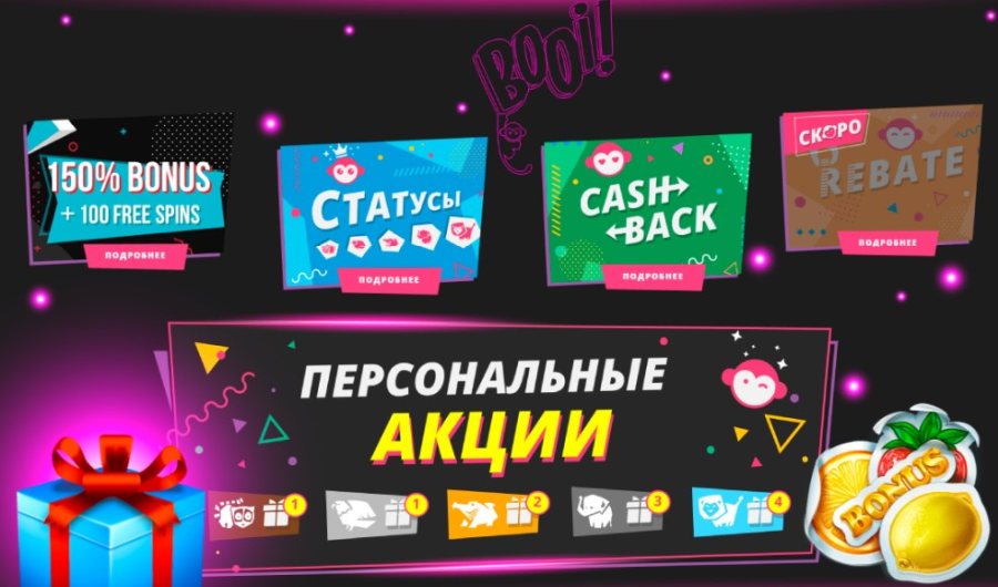 Казино Буй проводит шикарную бонусную программу (депозитные и безлепозитные бонусы) и акции. Увеличить сумму депозита можно простым способом – ввести актуальный промокод и выполнить условия отыгрыша. На постоянной основе действуют следующие предложения: